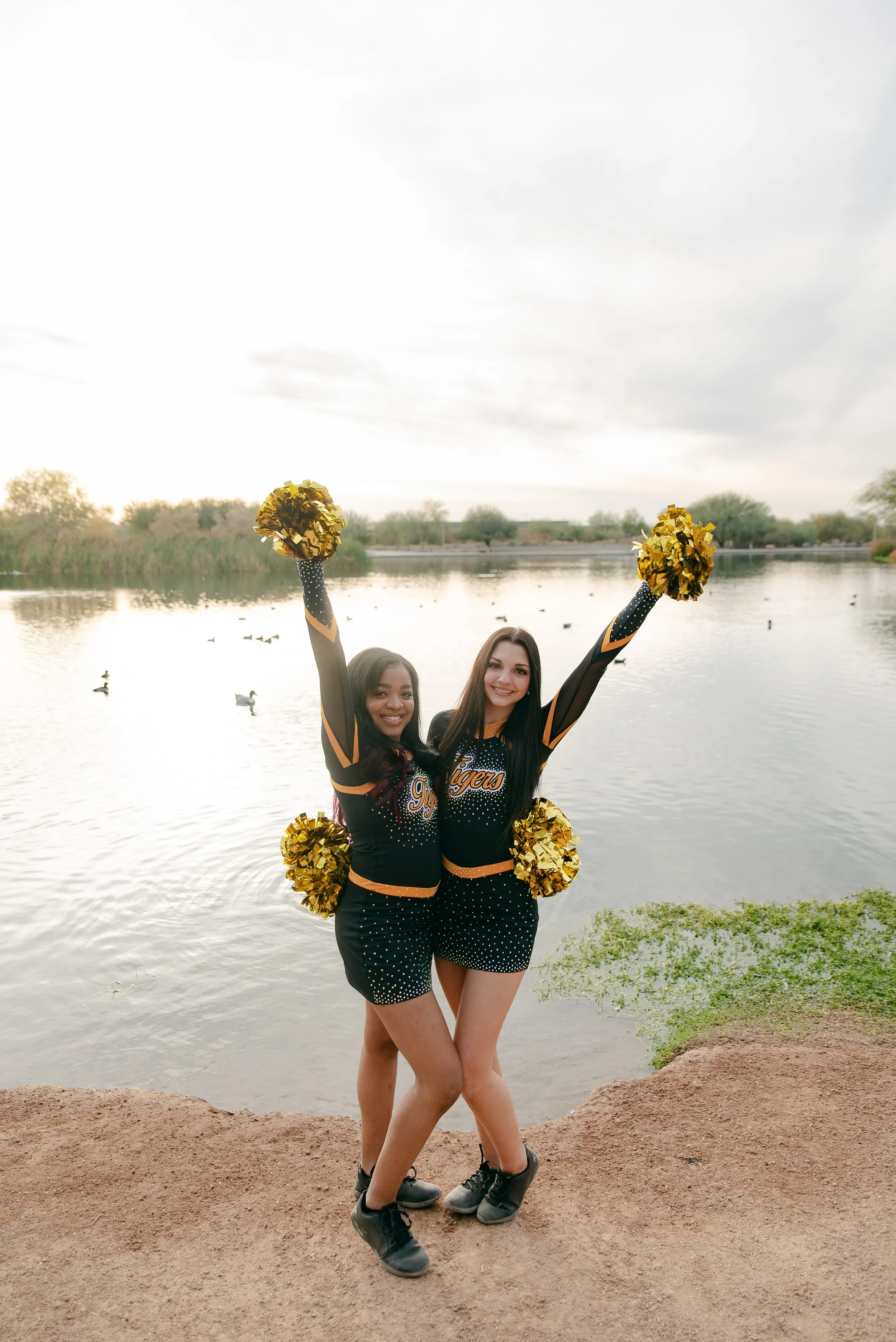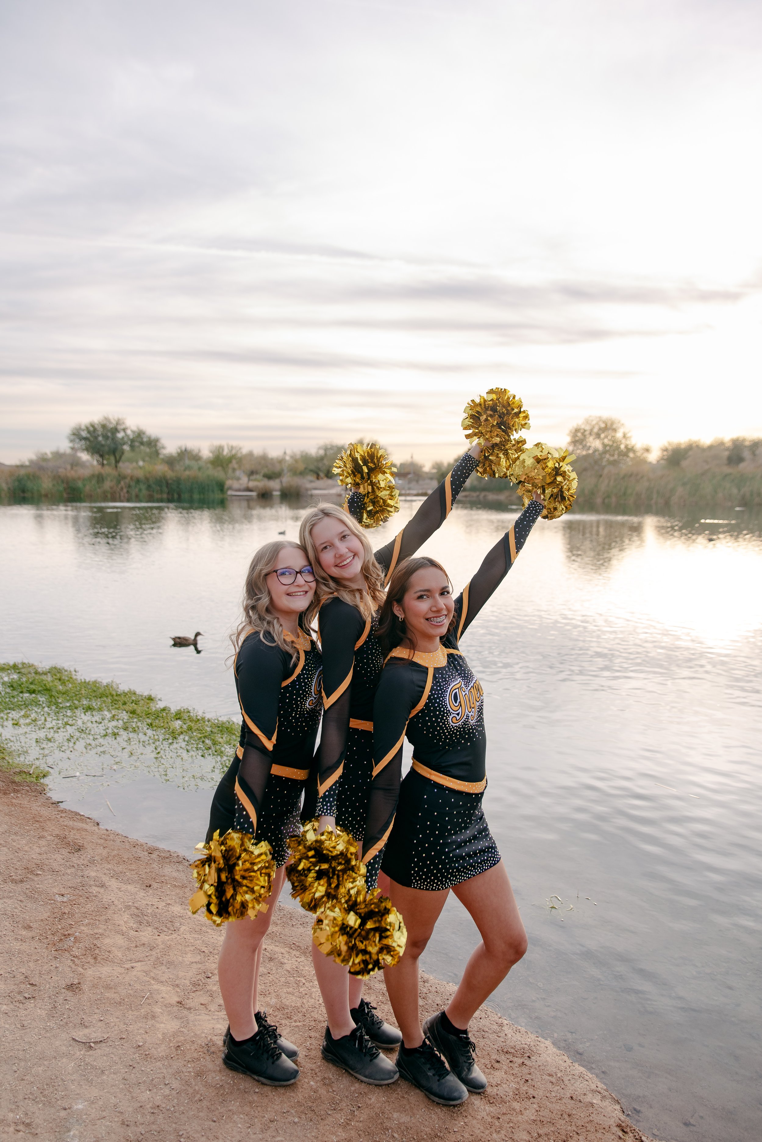 Their pom team photos turned out sooo pretty. They loved last year’s location, so we weren't back to this beautiful outdoor area full of golden leaves, open air, and a bit of water.