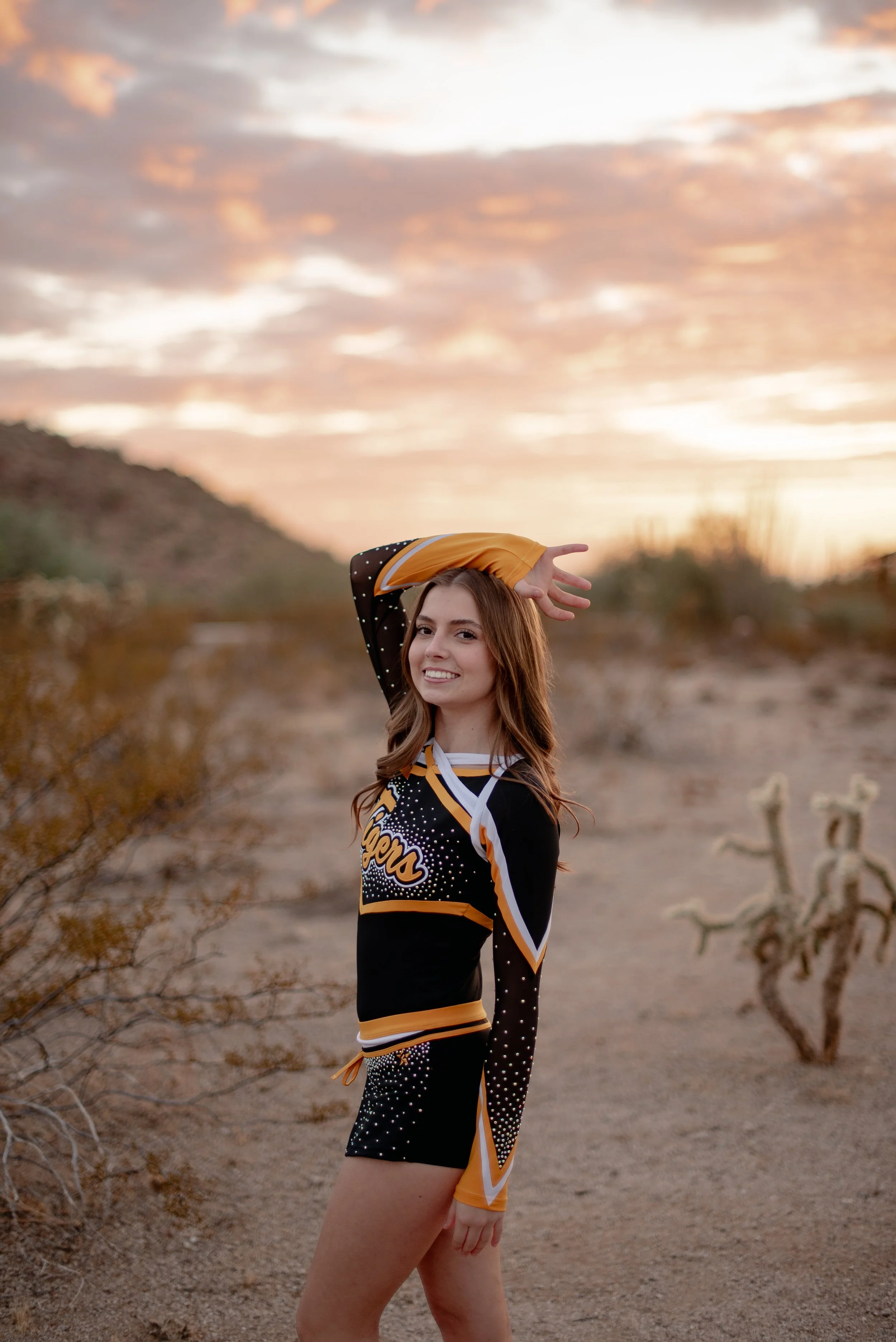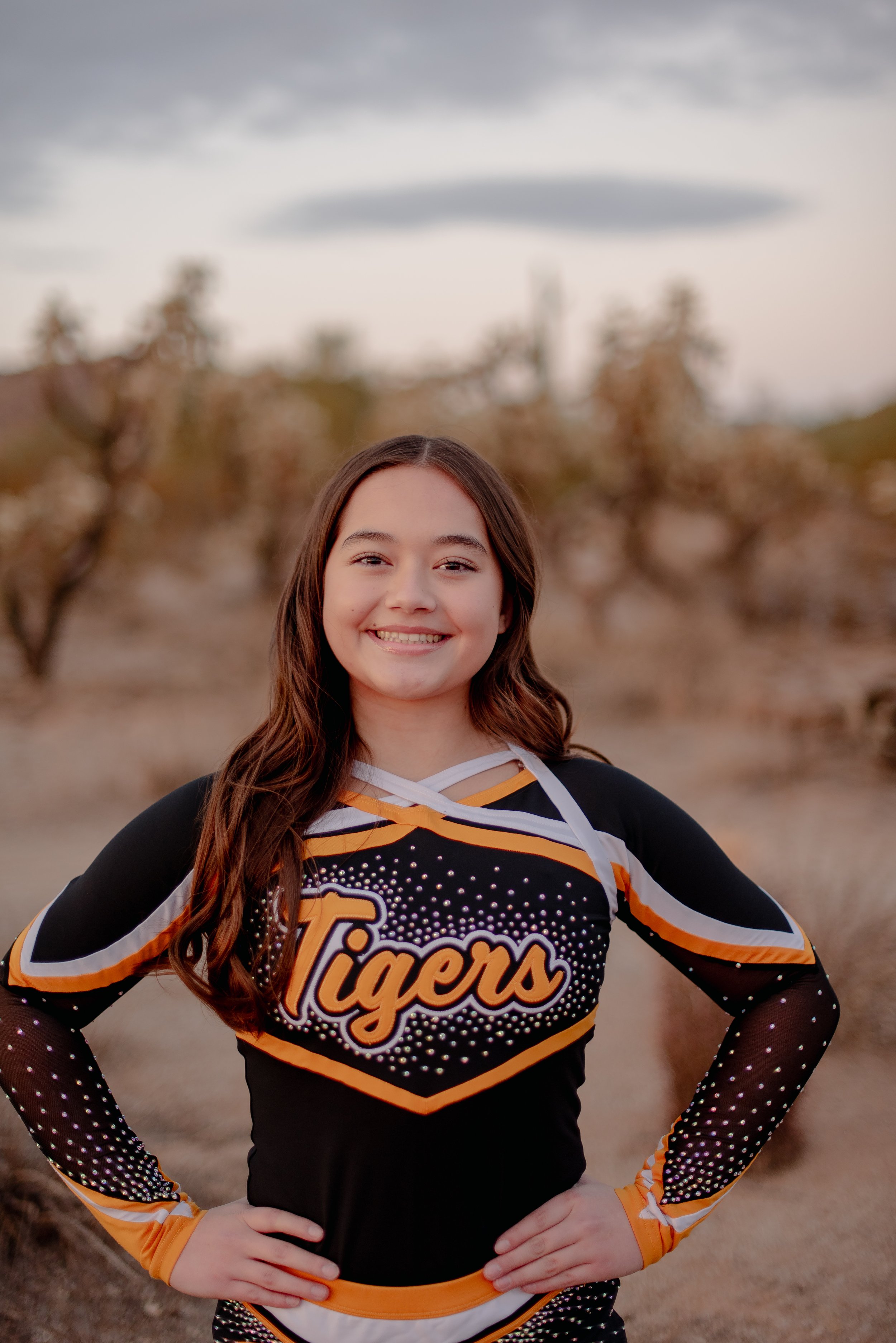 Cheer team photos in the desert were on the agenda this time - and wow they did not disappoint. We really wanted true golden hour desert photos for Varsity, so we stacked our schedule accordingly, and got the most perfect golden glow for their photos. Starting with Junior Varsity, we did team photos, individuals, and of course bestie pics for each of the three teams - JV, Varsity, and Comp Cheer. We had a bit of unplanned overlap with JV and Varsity that we were able to accommodate, and it made for some of the cutest bestie pics!!!