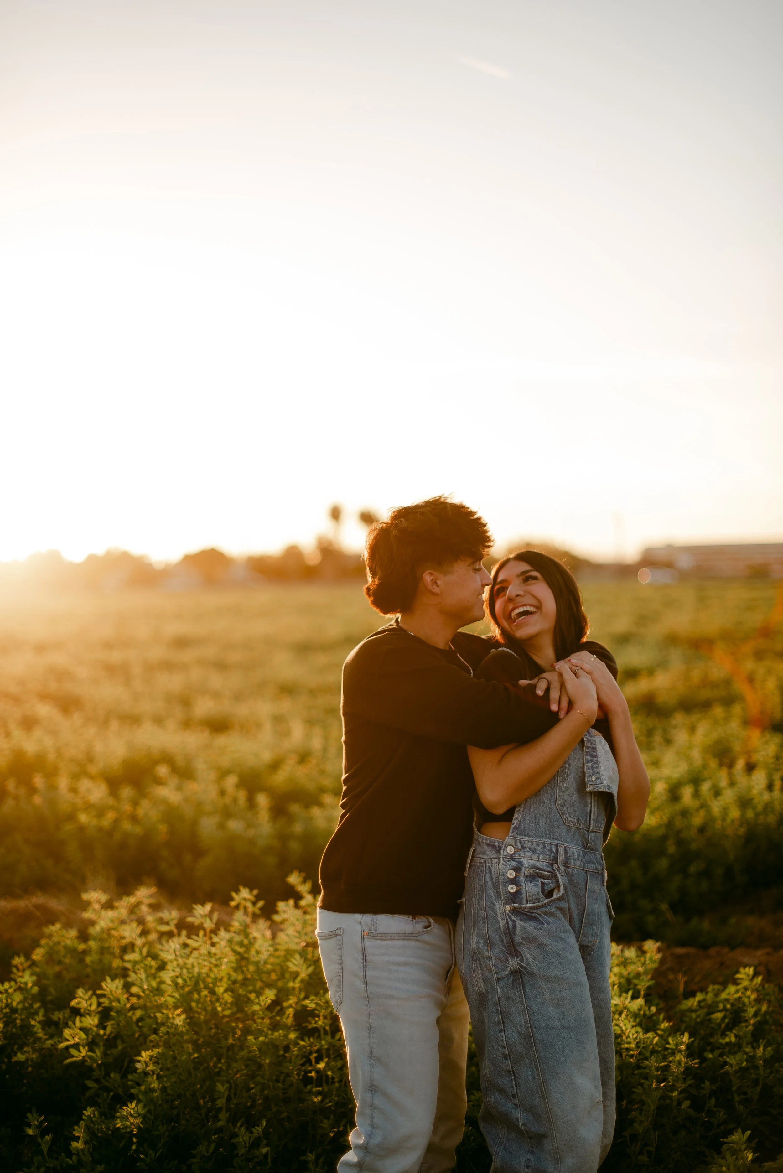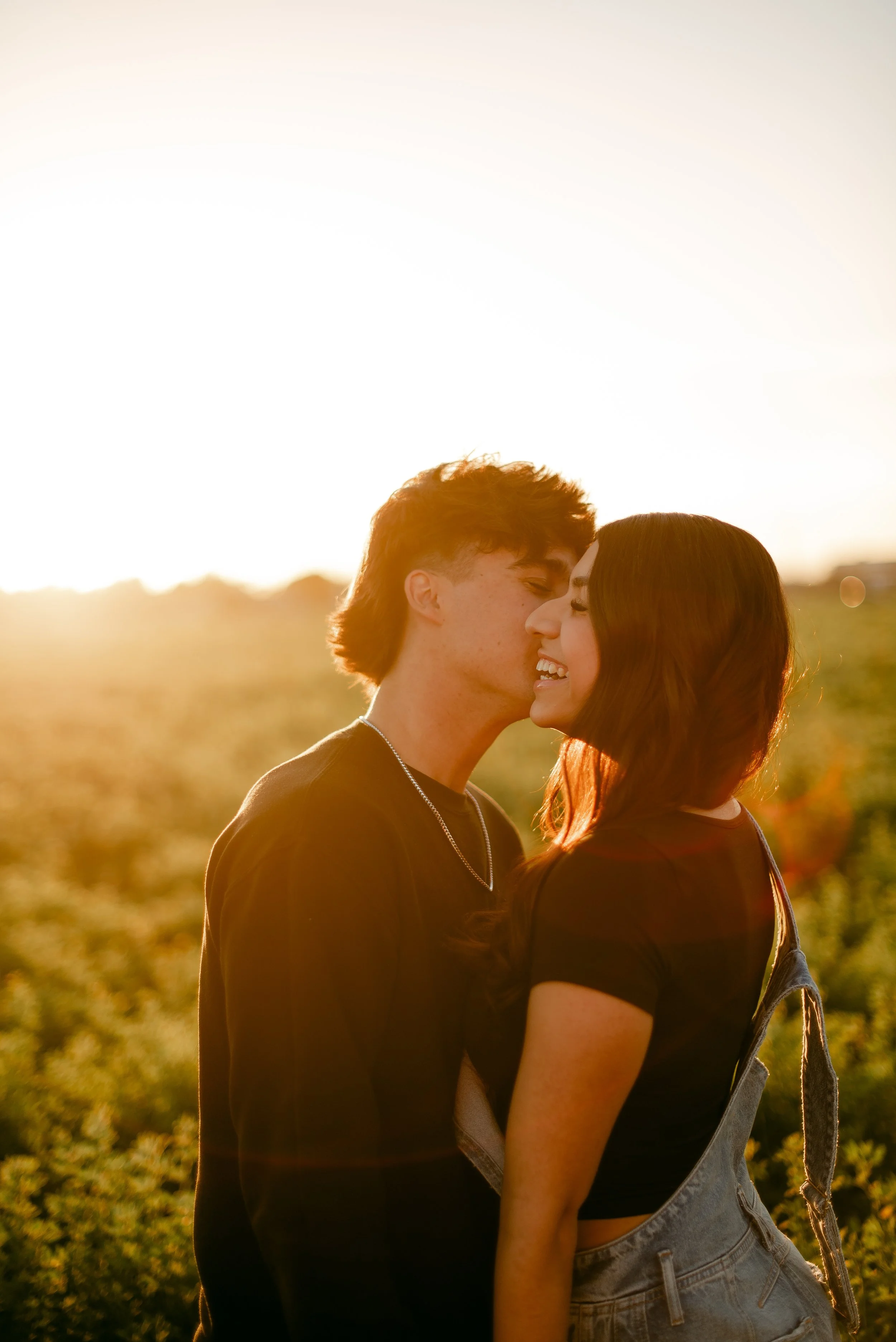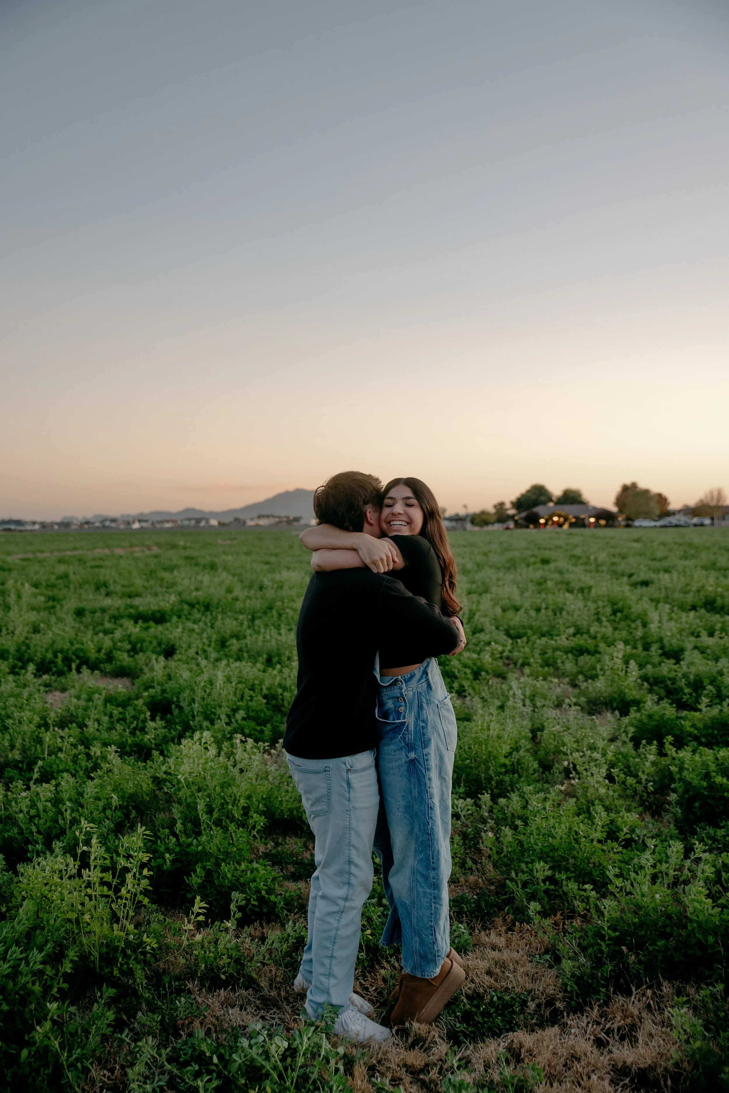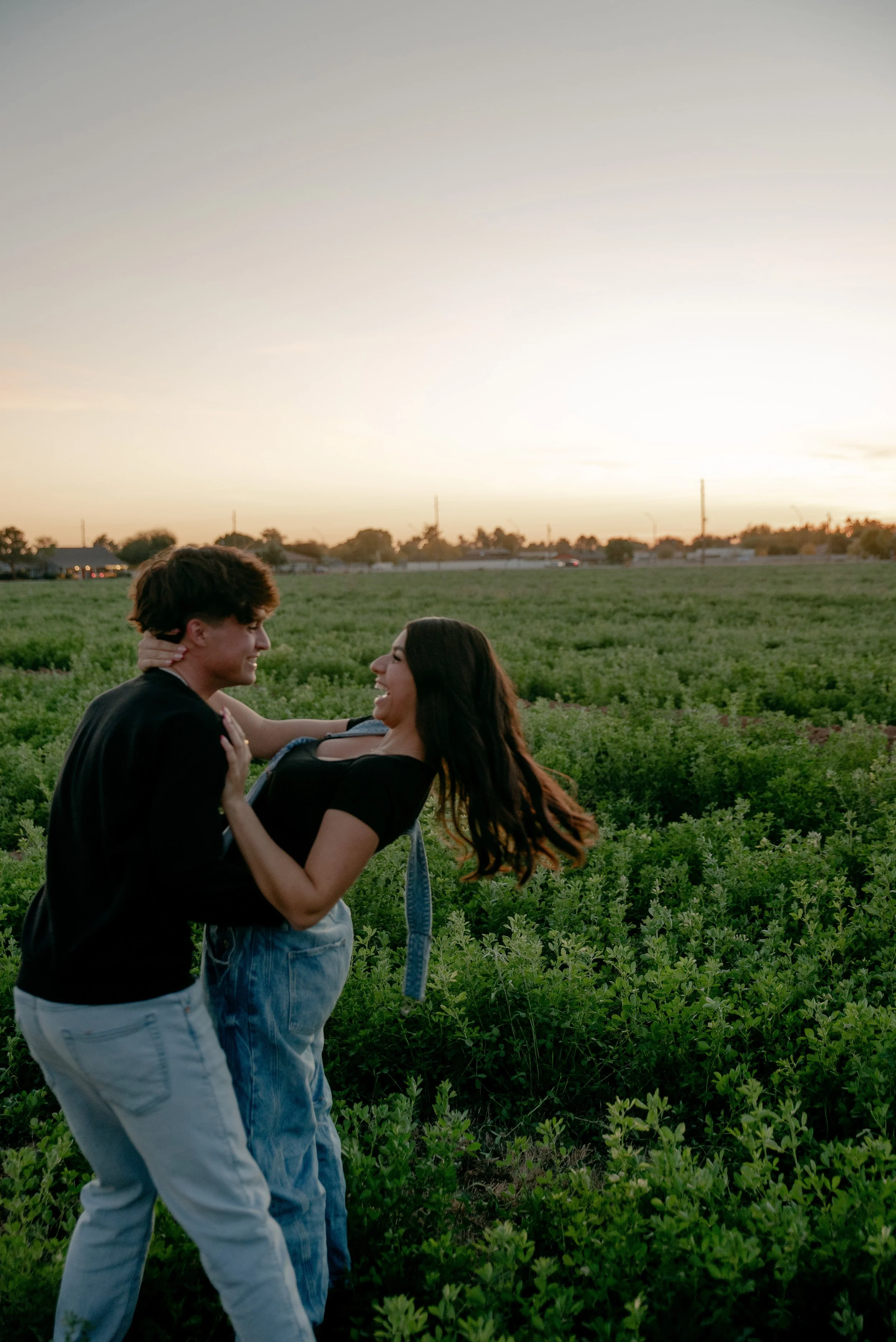 We shot their anniversary photos in an open field in Gilbert, and WOW did it deliver. The green grass, open space, and the sun’s golden glow was sooo stunning. Open field locations are seriously one of my favorites — they’re timeless and let you and your favorite person be the main focus of the pictures.