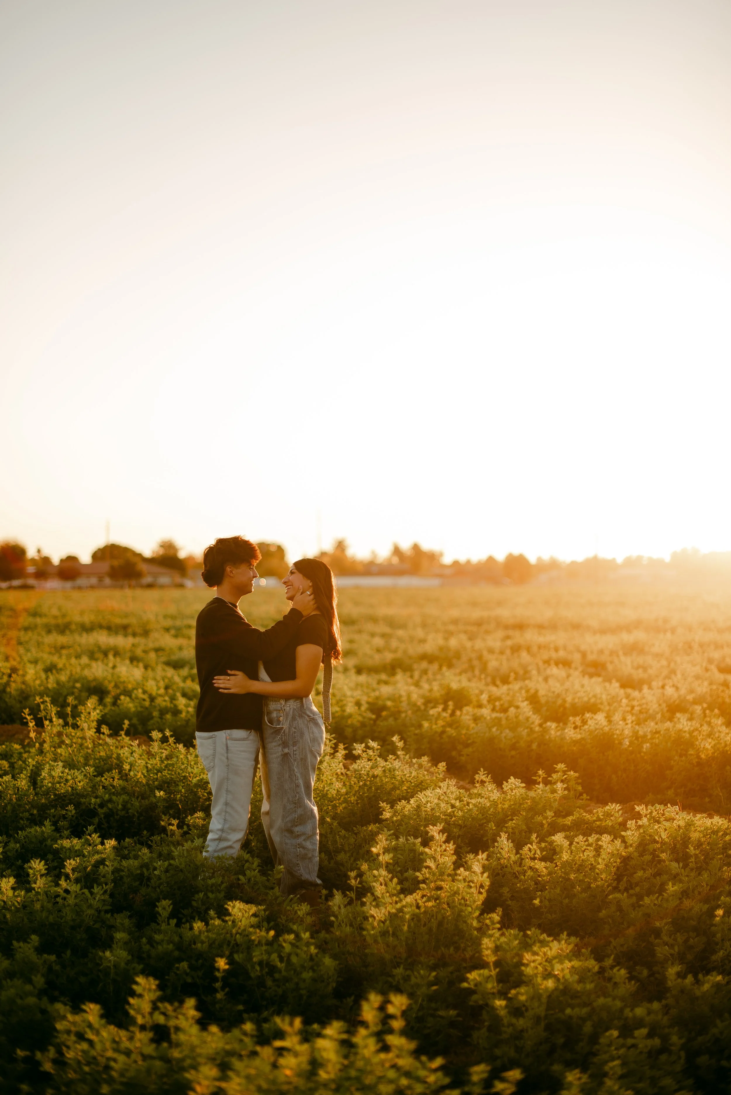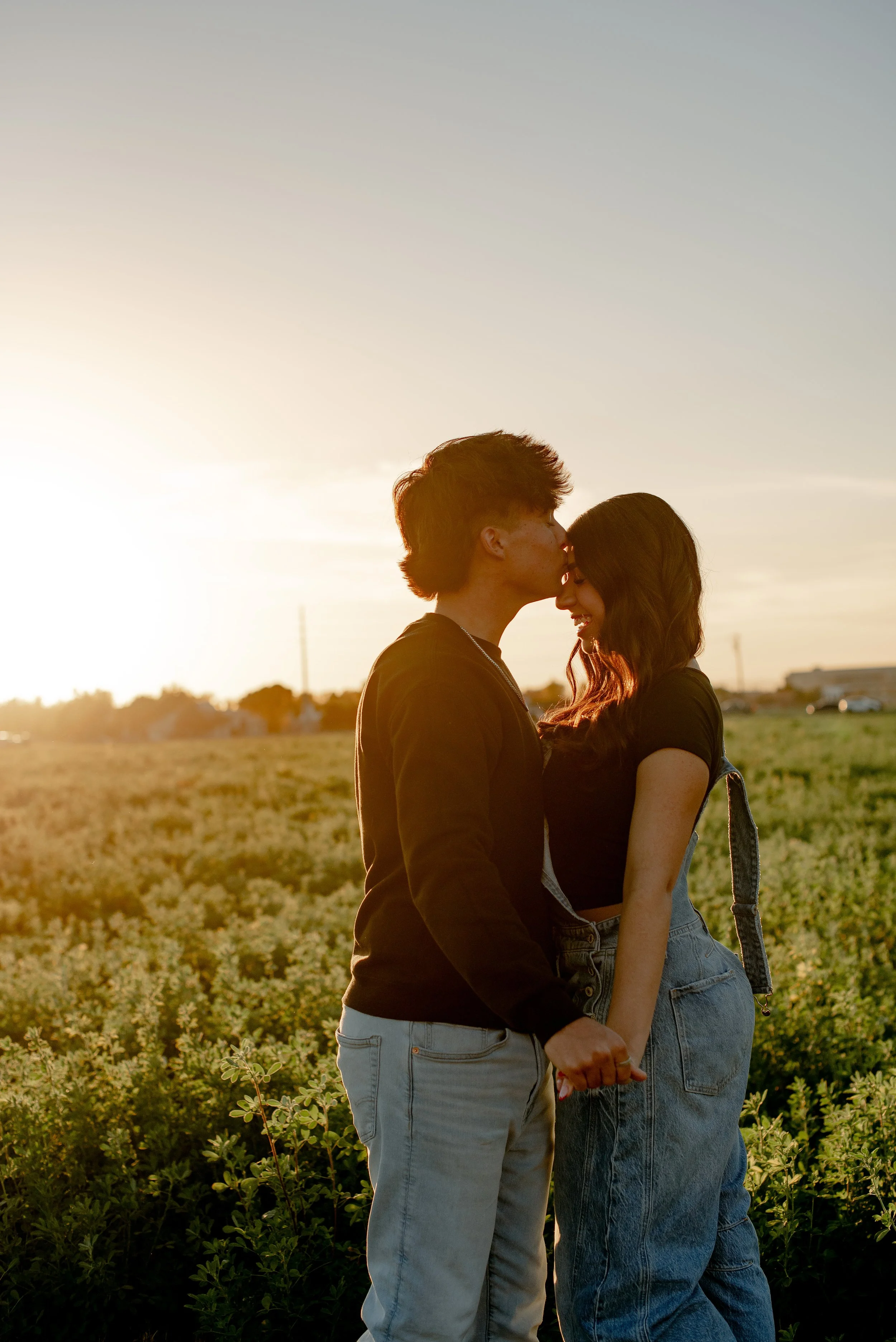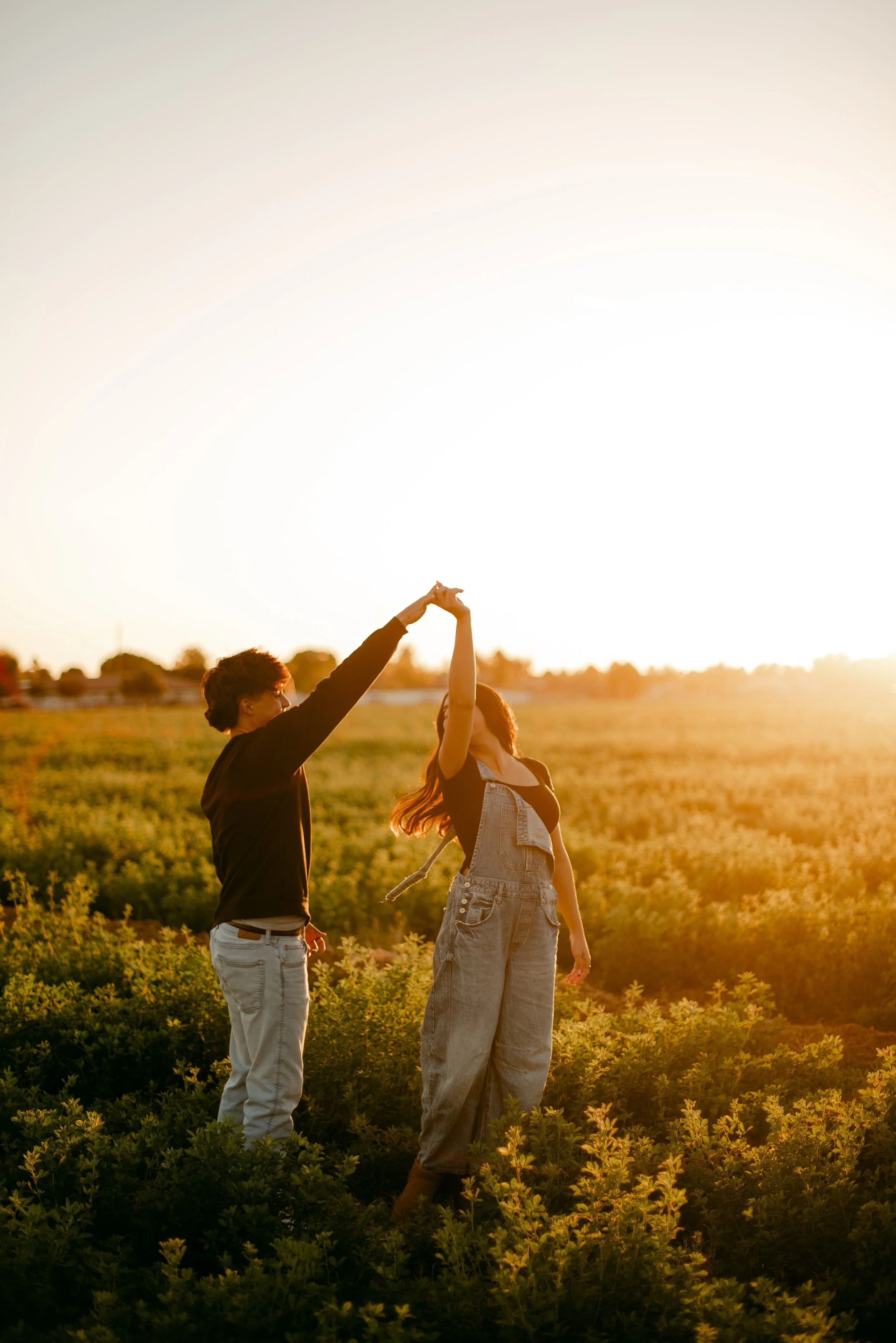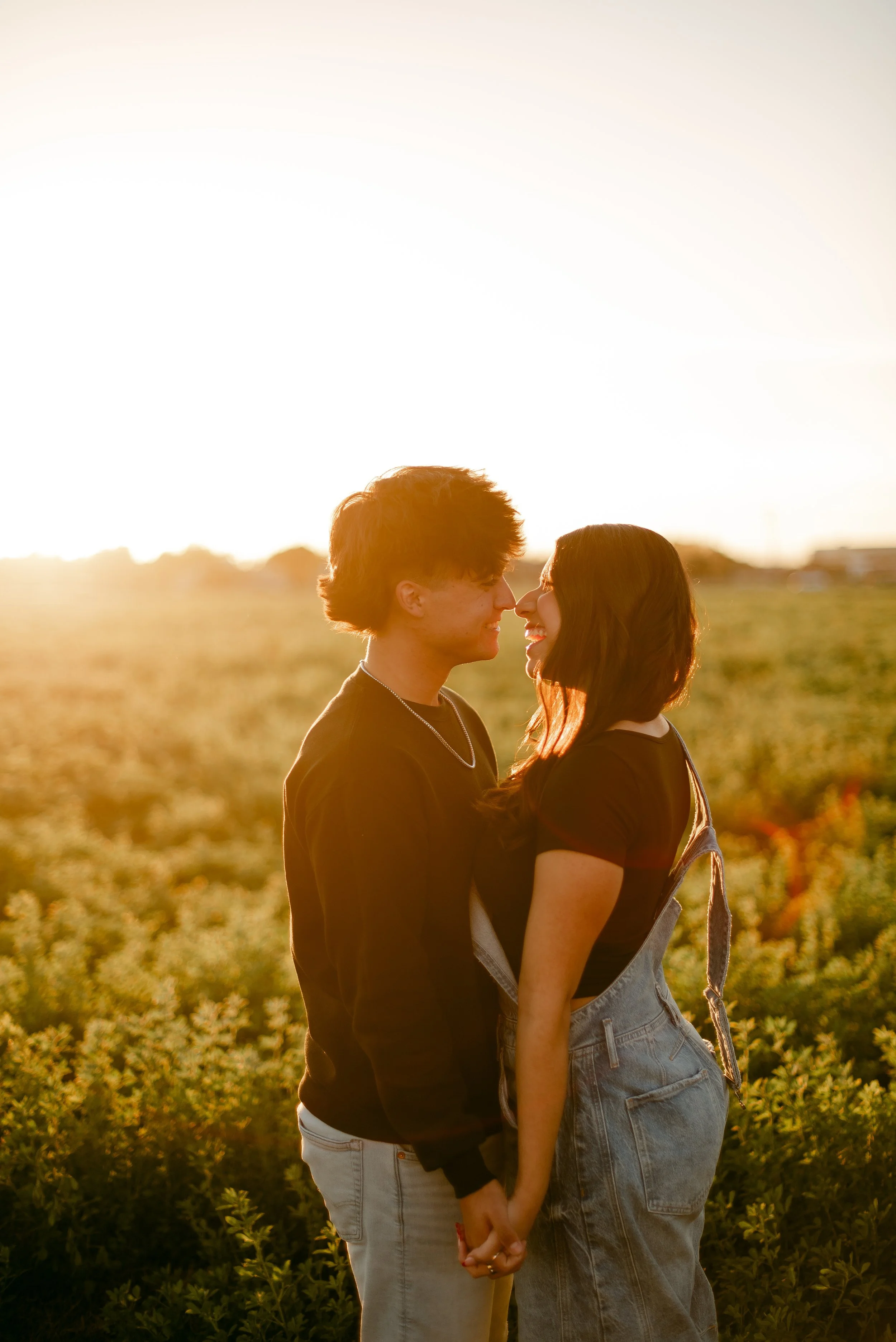 We shot their anniversary photos in an open field in Gilbert, and WOW did it deliver. The green grass, open space, and the sun’s golden glow was sooo stunning. Open field locations are seriously one of my favorites — they’re timeless and let you and your favorite person be the main focus of the pictures.