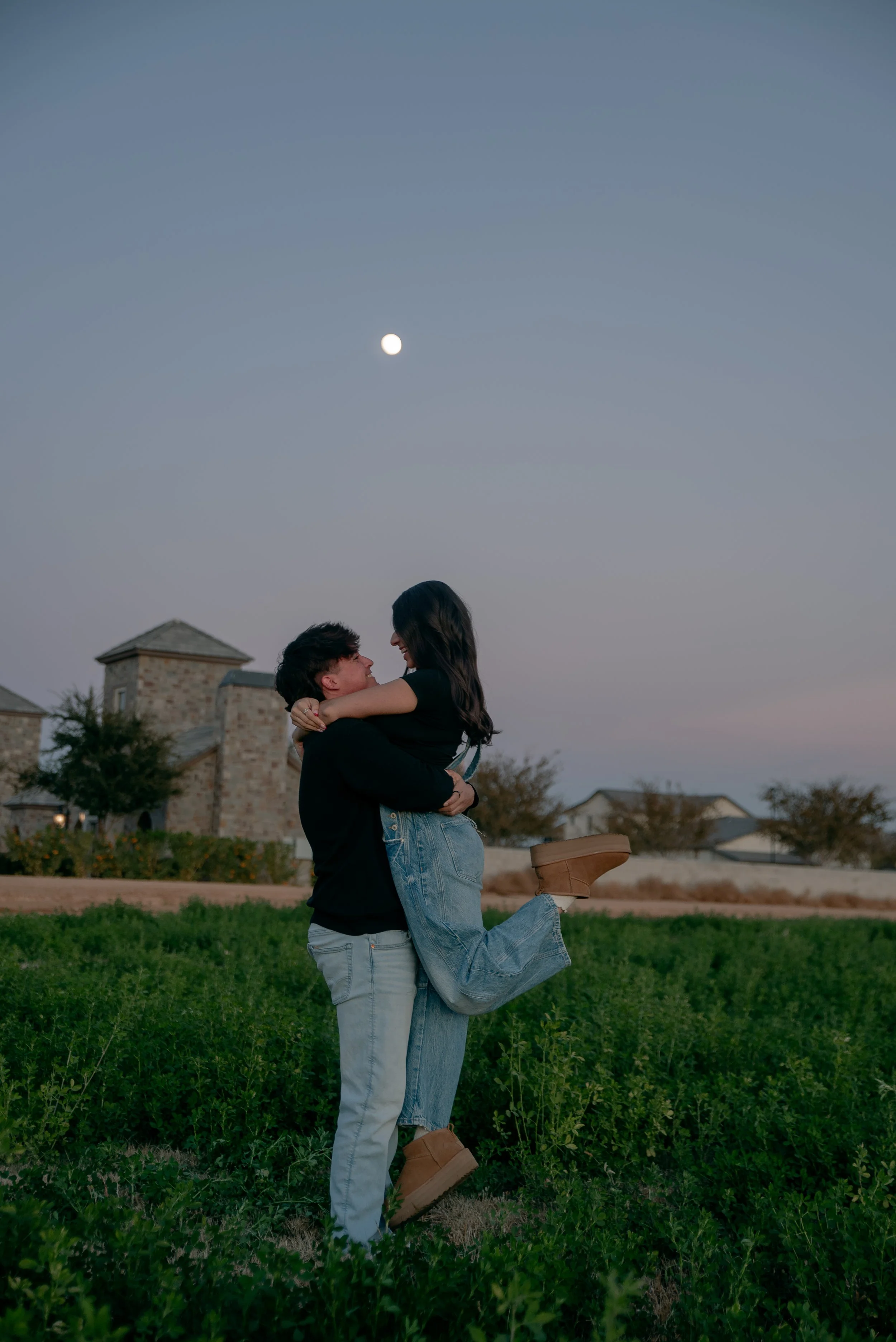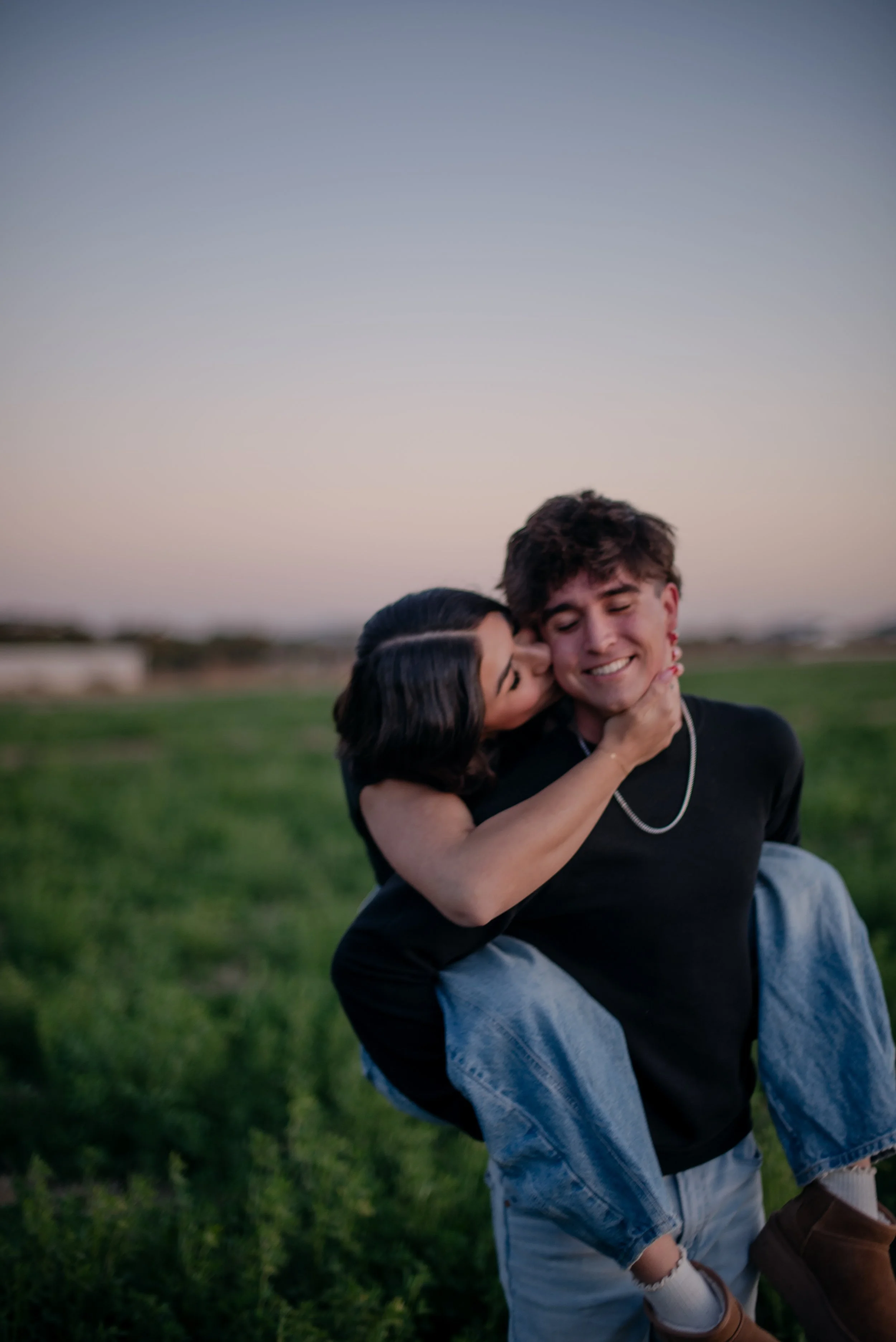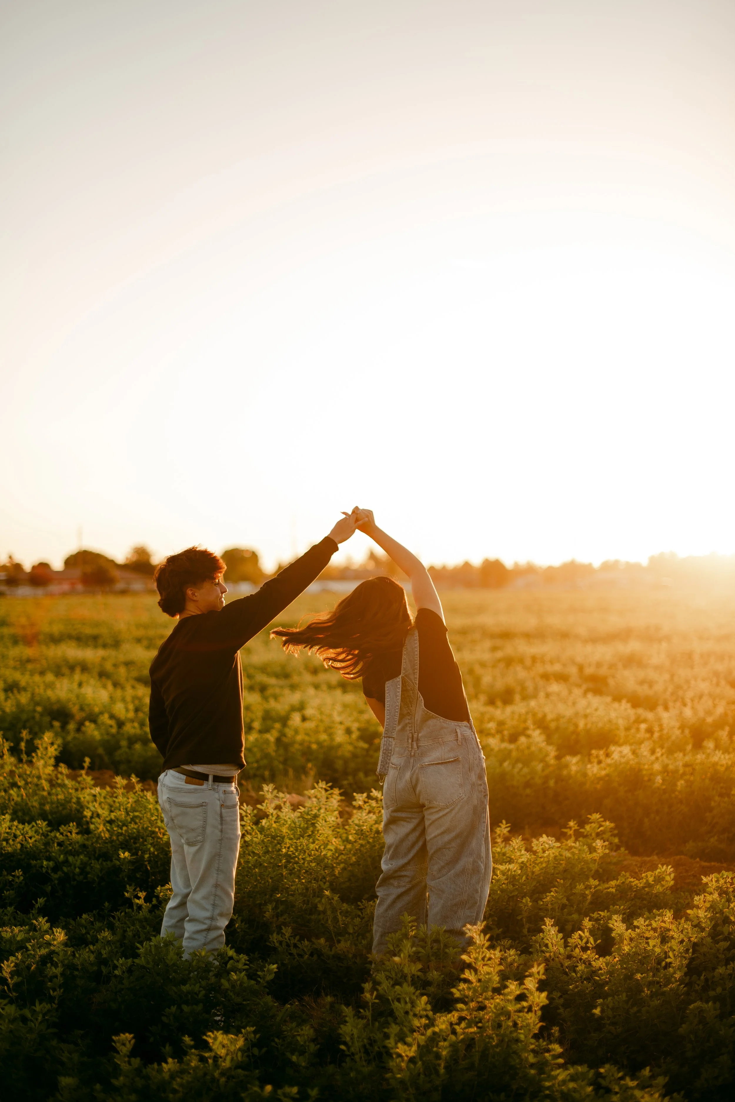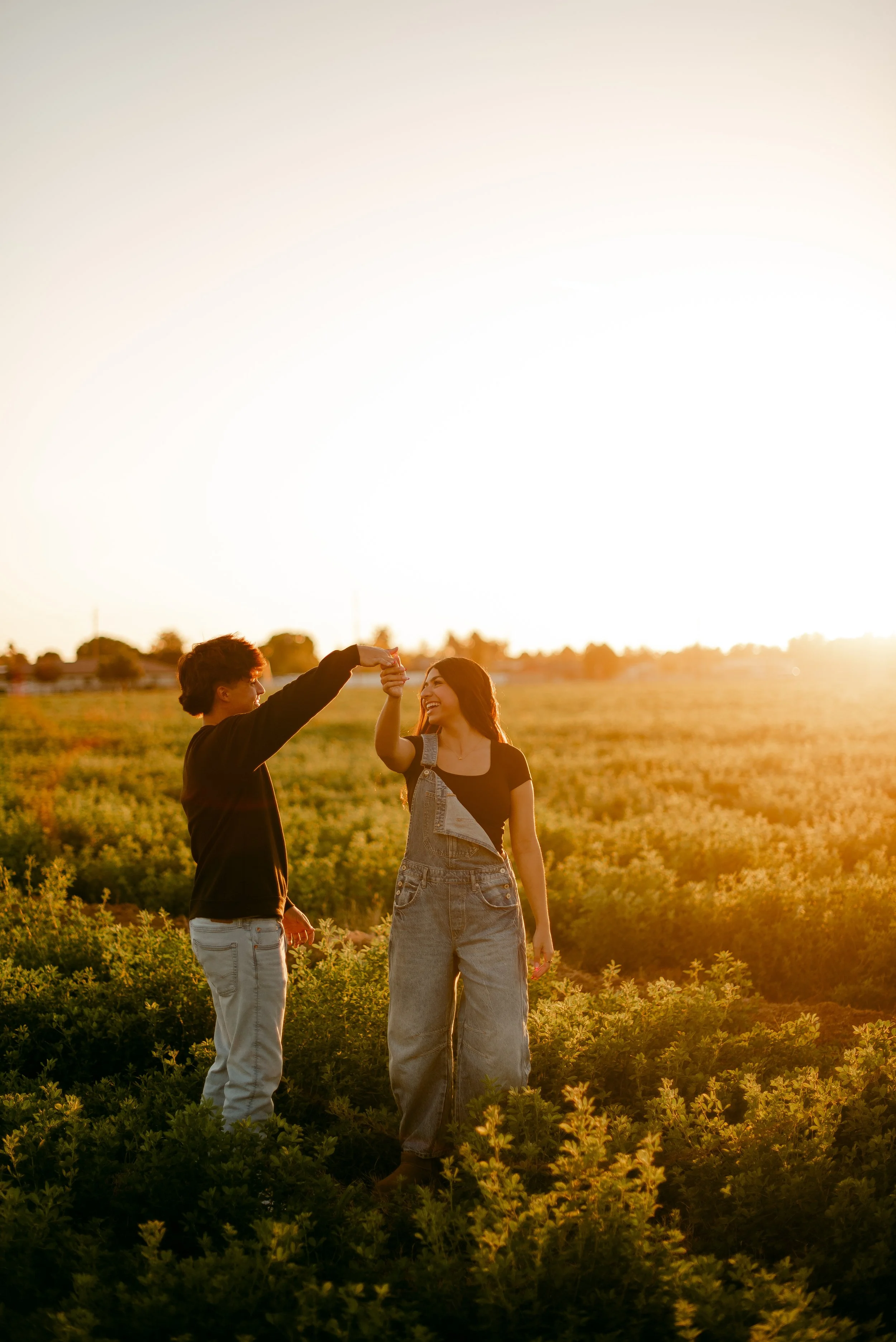 We shot their anniversary photos in an open field in Gilbert, and WOW did it deliver. The green grass, open space, and the sun’s golden glow was sooo stunning. Open field locations are seriously one of my favorites — they’re timeless and let you and your favorite person be the main focus of the pictures.